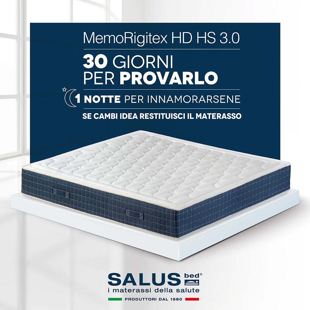 A differenza di quanto si pensi, non è sufficiente che il materasso sia di buona fattura per agevolare la rigenerazione notturna delle nostre energie: è indispensabile invece che si adatti alle caratteristiche fisiche e alle esigenze di chi lo utilizza. Noi di Mobili Rinaldi ci affidiamo solo al meglio, e per noi il meglio è Il Gruppo Salus, da anni riferimento nel mondo del riposo, si è distinto nel tempo per lo studio continuo di materiali e metodi finalizzati alla creazione di materassi tecnologicamente all’avanguardia, in grado di soddisfare le molteplici e sacre regole del sano dormire.
